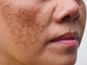 Melasma : Ditandai dengan bercak-bercak berwarna kecoklatan pada wajah terutama pada bagian pipi. Umumnya melasma ini muncul di area wajah yang sering terpapar sinar matahari.